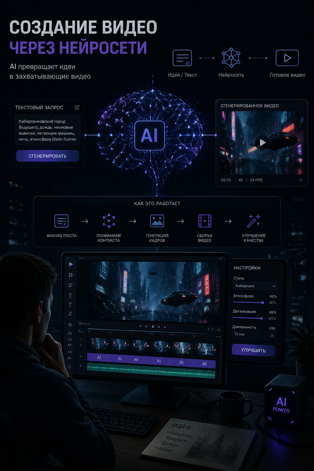 Предлагаю услугу по созданию рекламных видеороликов, музыкальных клипов и другого креативного контента с использованием нейросетей. Генерирую уникальные видео- и музыкальные решения для вашего бизнеса и творчества — быстро, стильно и современно.